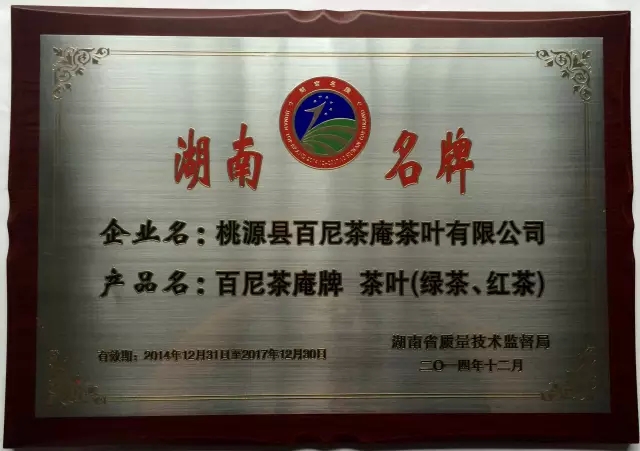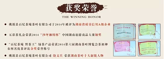 湖南省百尼茶庵茶叶有限公司及个人饶文兵获得以下荣誉: